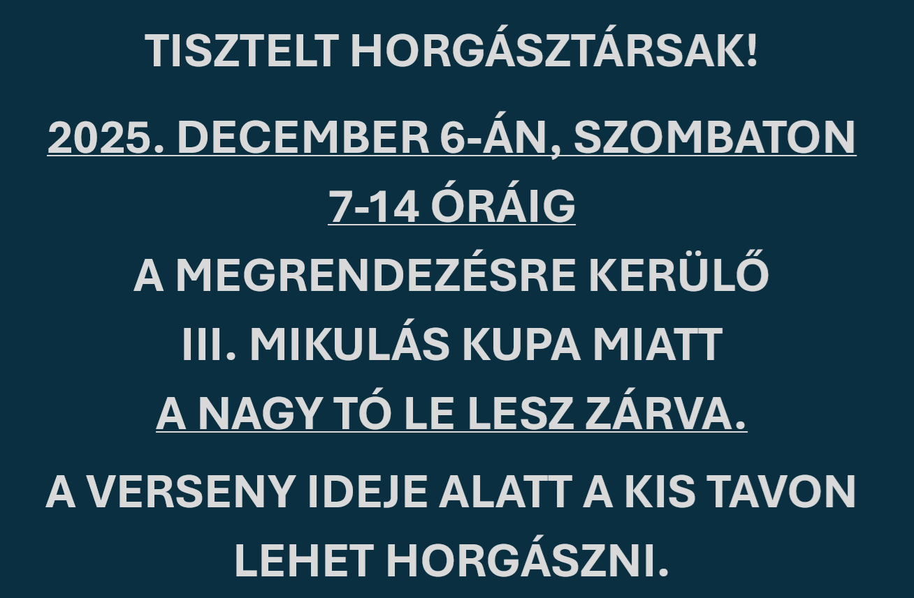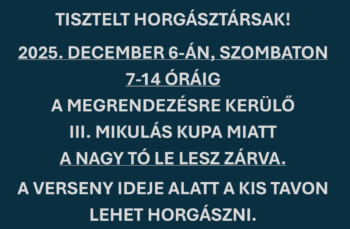 Lőrintei HorgásztóHírek • Nagy tó lezárás 2025.12.06-án, szombaton, 7-14 óráig