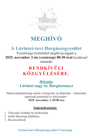 Lőrintei HorgásztóHírek • Rendkívüli közgyűlés 2025. november 02. 08:30